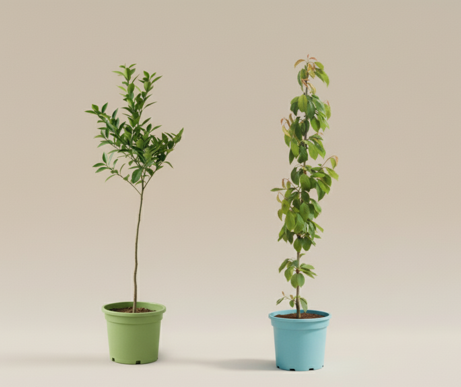 Crea tu propio rincón verde con dos árboles frutales de 1,0-1,5 m, ideales para terrazas o patios. Cultiva, observa y comparte el proceso de verlos crecer.